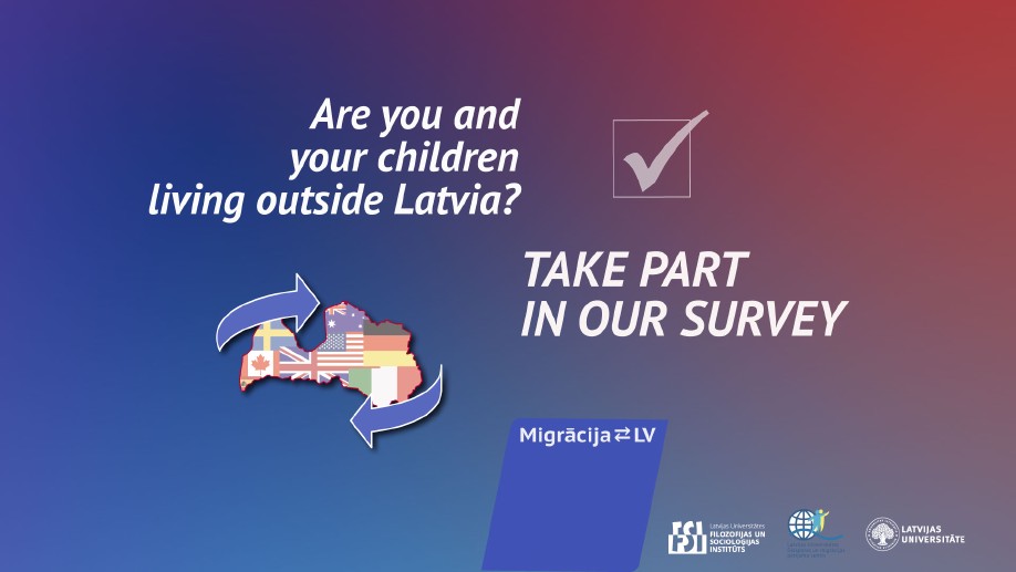 The University of Latvia Centre for Diaspora and Migration Research is carrying out a study on how people who live outside Latvia make decisions about their personal and their children’s education - how they choose where to study, and whether they see Latvia as a potential destination for studies. Researchers invite youth of Latvian descent who live in different countries and are studying or consider doing it, as well as parents of children aged 10 to 25, to participate in this research.