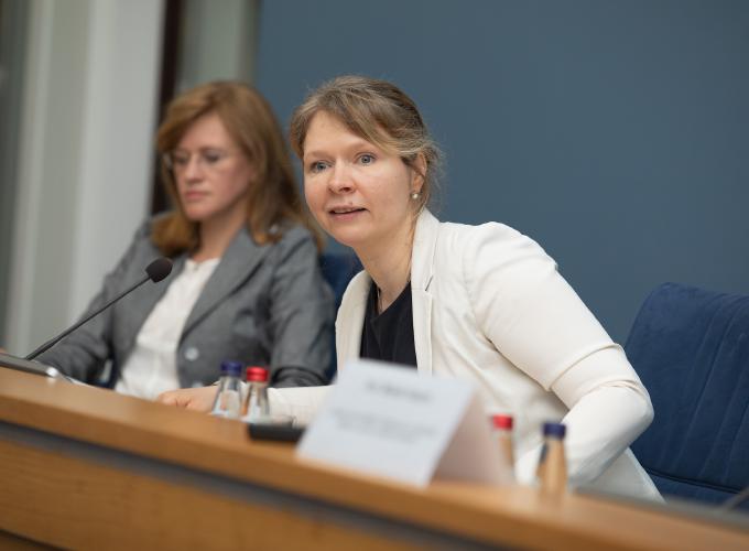 Prof. Mihails Hazans prezentē remigrācijas apjoma novērtējuma pētījuma rezultātus. Foto: Laura Celmiņa, Ārlietu ministrija.